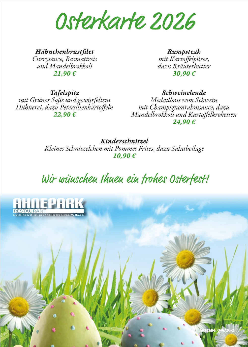 Werfen Sie einen Blick auf unsere aktuelle Speisenkarte!